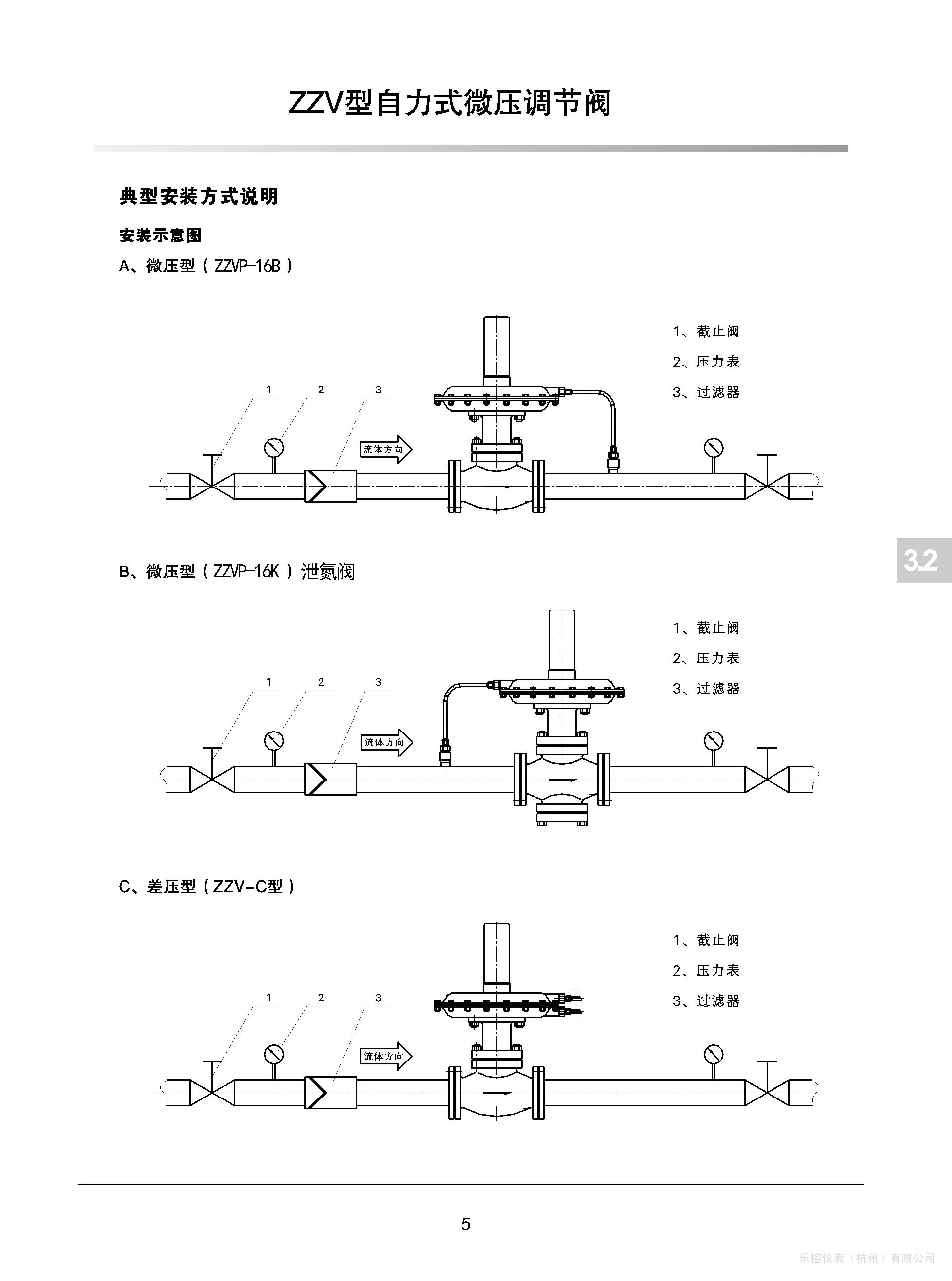 压开型(ZZVP-16K型):控制阀前压力的调压阀,其初始位置的阀芯在关闭位置,当设定点压力逐渐升高,阀逐渐打开,直至阀前压力稳定在要求的给定值。